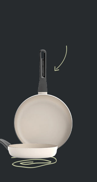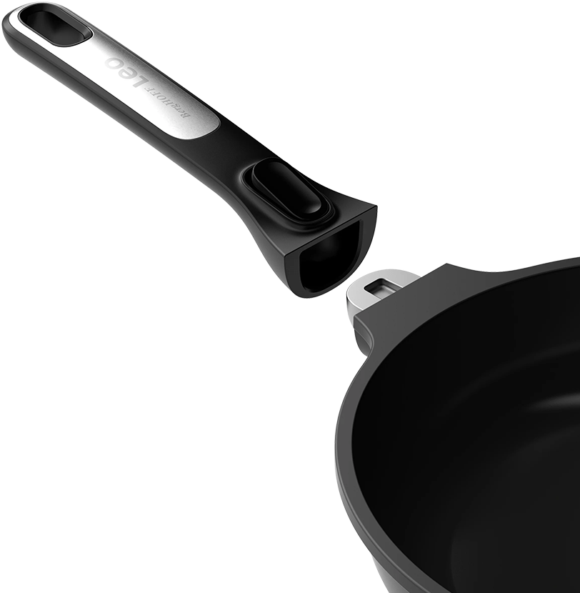 Handvat eraf in 1 klik. Makkelijk in de oven en slim opbergen. Dat is pas exciting.