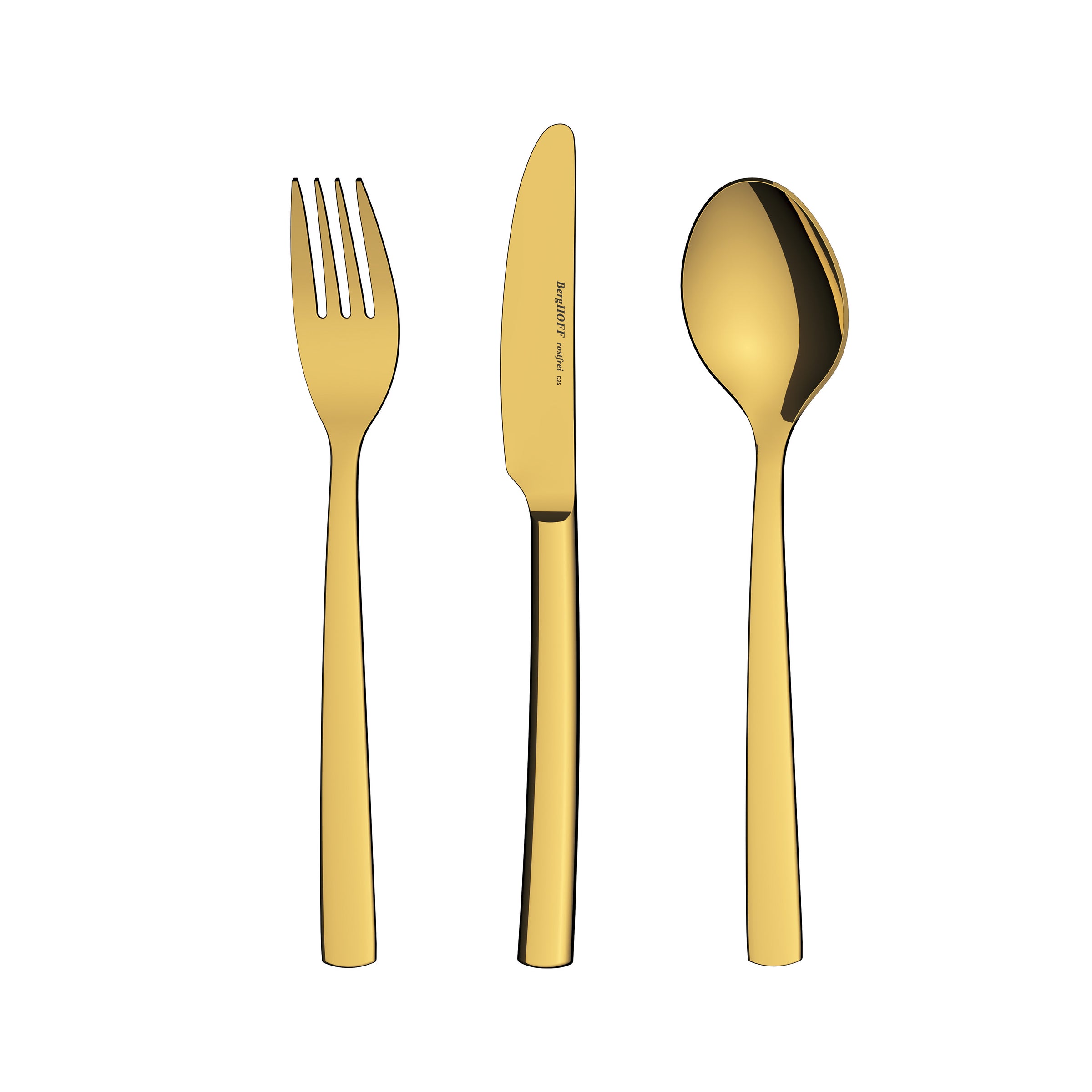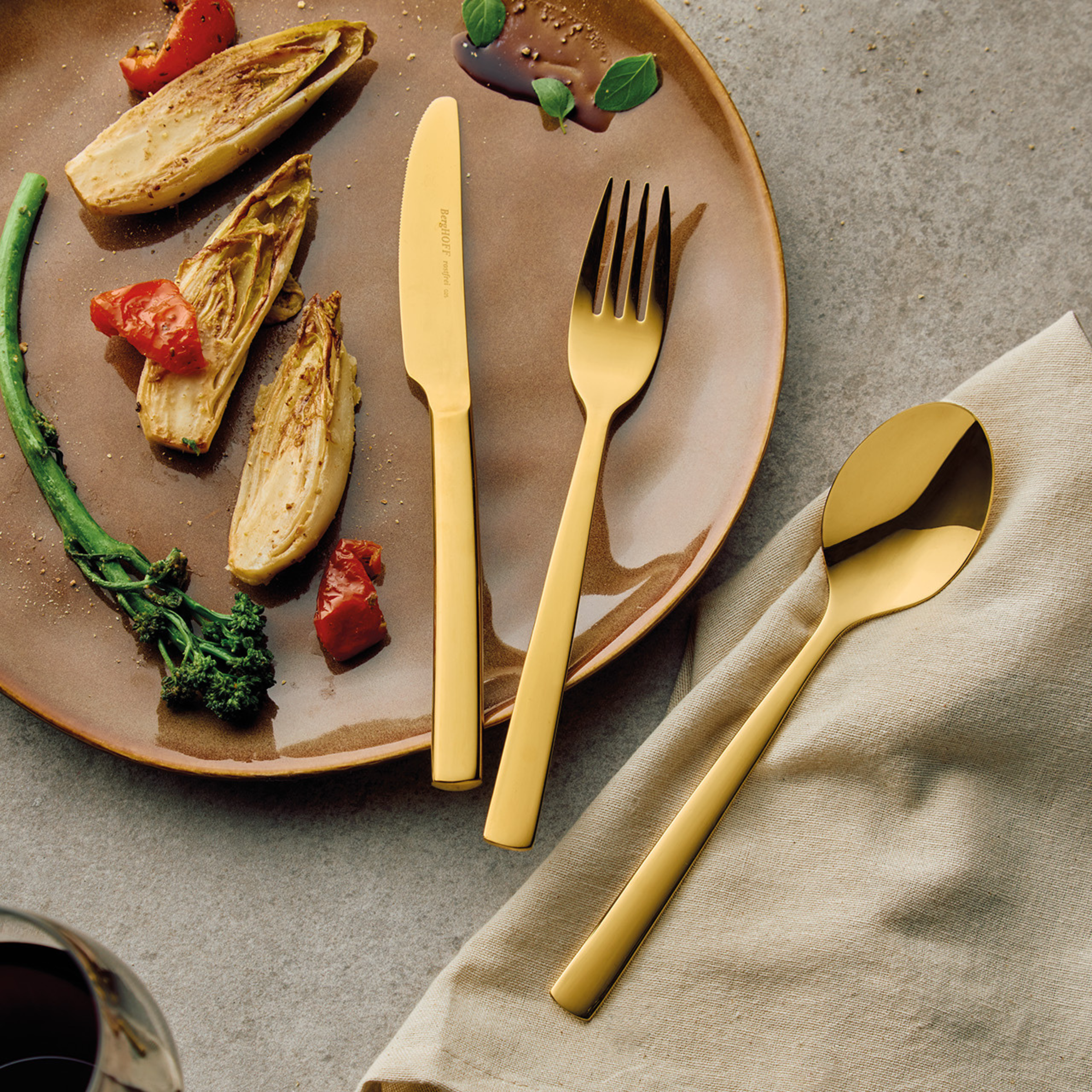 Voeg een vleugje glamour toe aan je tafel met de 3-delige bestekset Pure Gold. Gemaakt van hoogwaardig roestvrij staal met een feestelijke gouden spiegelafwerking brengt deze set gedurfde stijl naar elke maaltijd. Perfect voor dagelijks gebruik of speciale gelegenheden – want wie zegt dat goud alleen voor Kerstmis is?