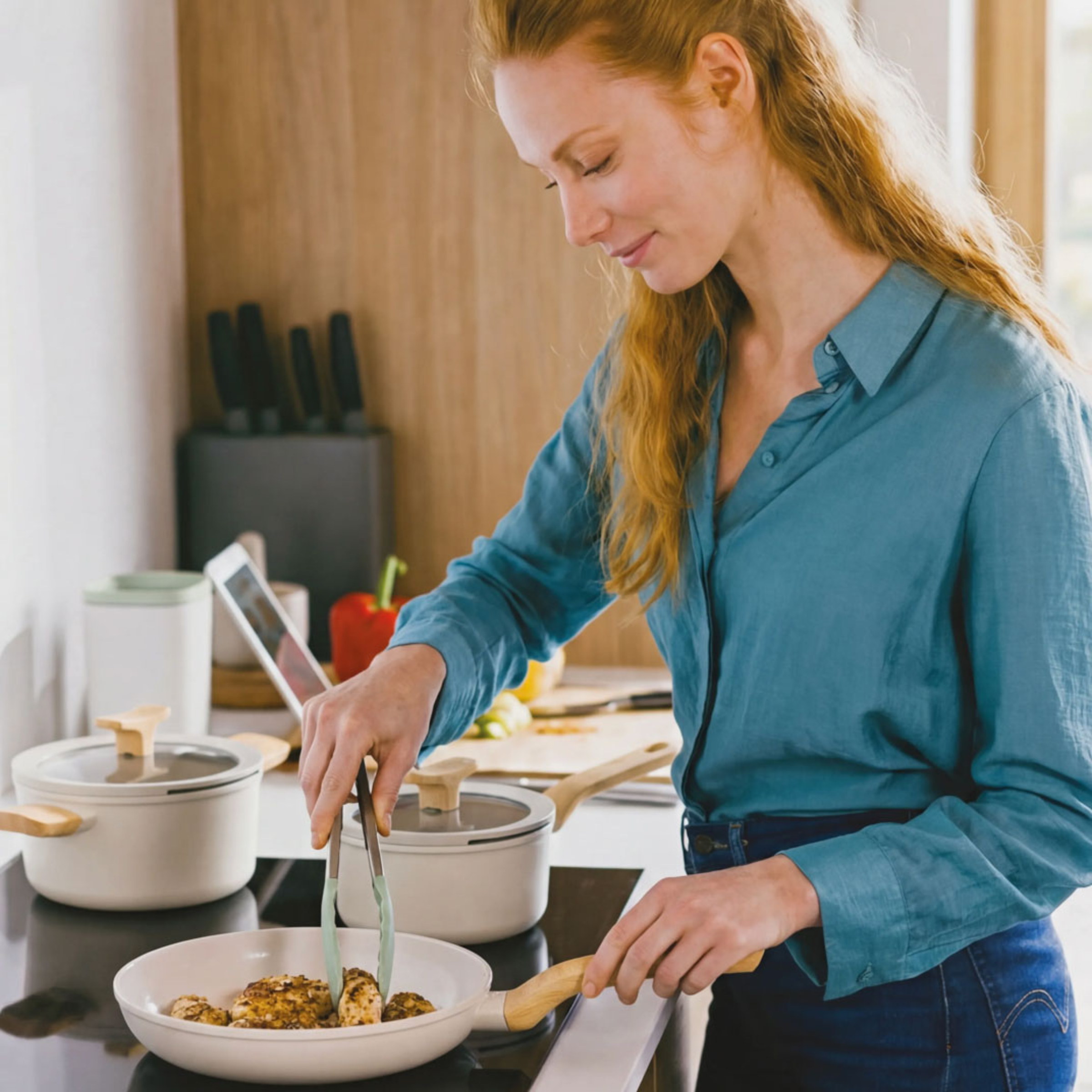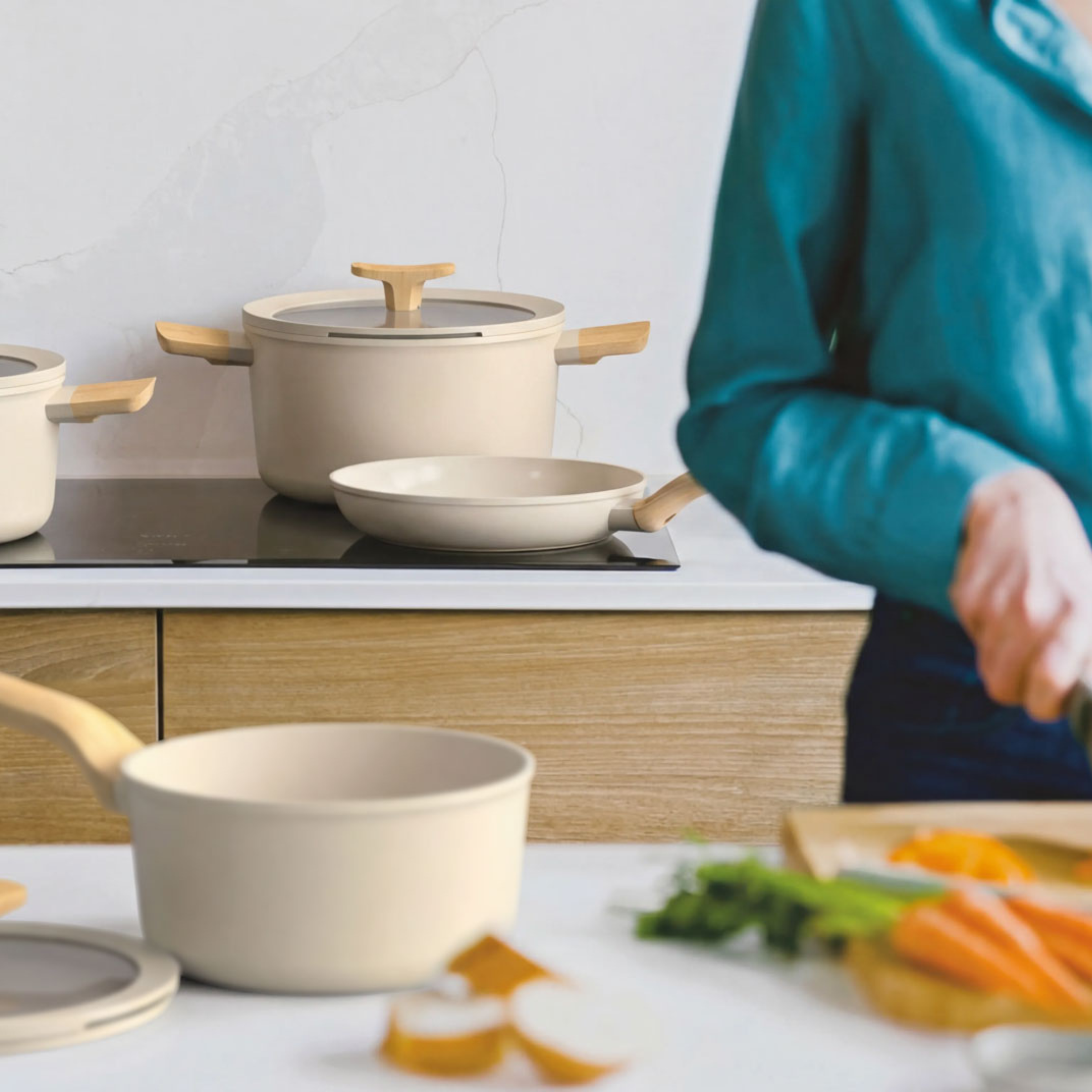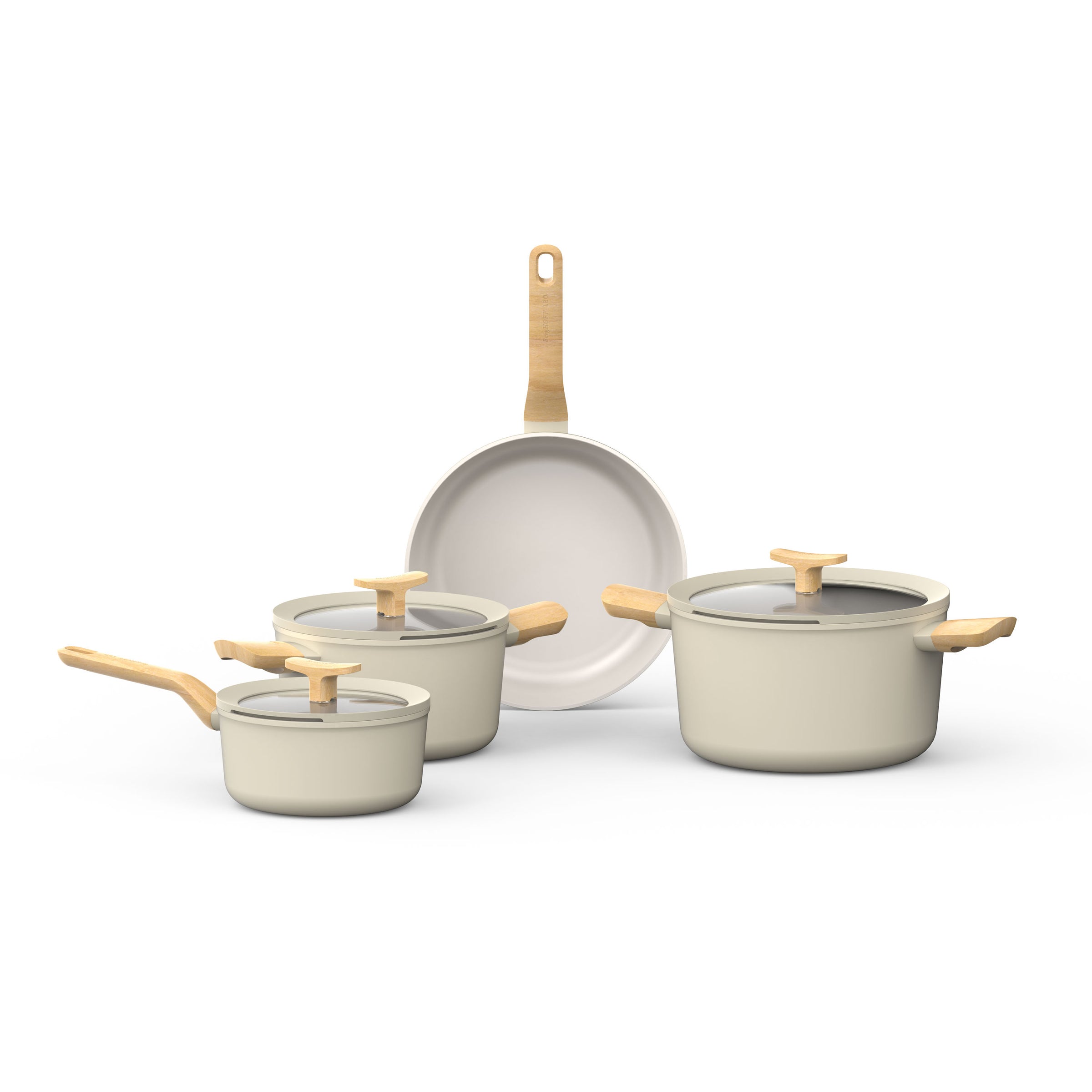La batterie de cuisine LEO 7 pièces ALU Cream est un ensemble léger et facile à manipuler, fabriqué en aluminium recyclé et doté d’un revêtement antiadhésif céramique CeraGreen sans PFAS, pour une cuisson saine sans que les aliments n’attachent et un nettoyage facile. Le fond plein assure une diffusion rapide et homogène de la chaleur pour une cuisson écoénergétique. Les couvercles en verre transparent sont équipés de canaux d’aération intégrés et d’une fonction d’égouttage pratique, ainsi que d’un repose-cuillère intégré dans la poignée du couvercle. Les poignées résistantes à la chaleur garantissent confort et sécurité. Convient à toutes les sources de chaleur, y compris l’induction et les systèmes d’aspiration downdraft, et résiste au four jusqu’à 180°C / 356°F.
